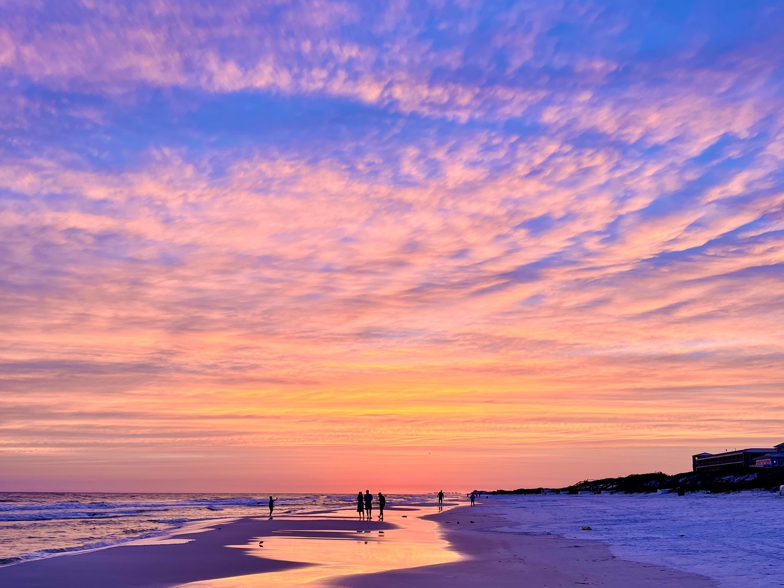 Summer sunsets are around 8:30 pm in June and July, but remember the best sunset is 15 minutes after sunset - you may just miss the most amazing sunset ever if you leave too soon! The sun sets to the south side of the beach over Seaside, and the views are amazing with cotton candy clouds - magical, and impossible really, but there it is anyway :)