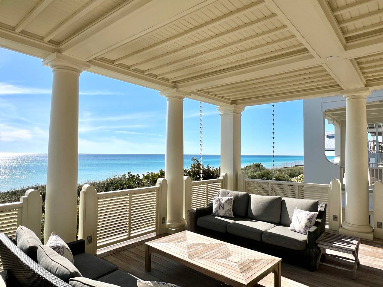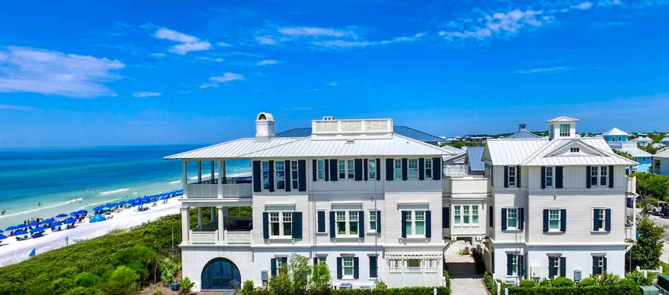 This huge cottage perched on the seashore and extending to Highway 30A offers both intimate access to the beach and immediate proximity to the shops, restaurants and activities of Seaside.