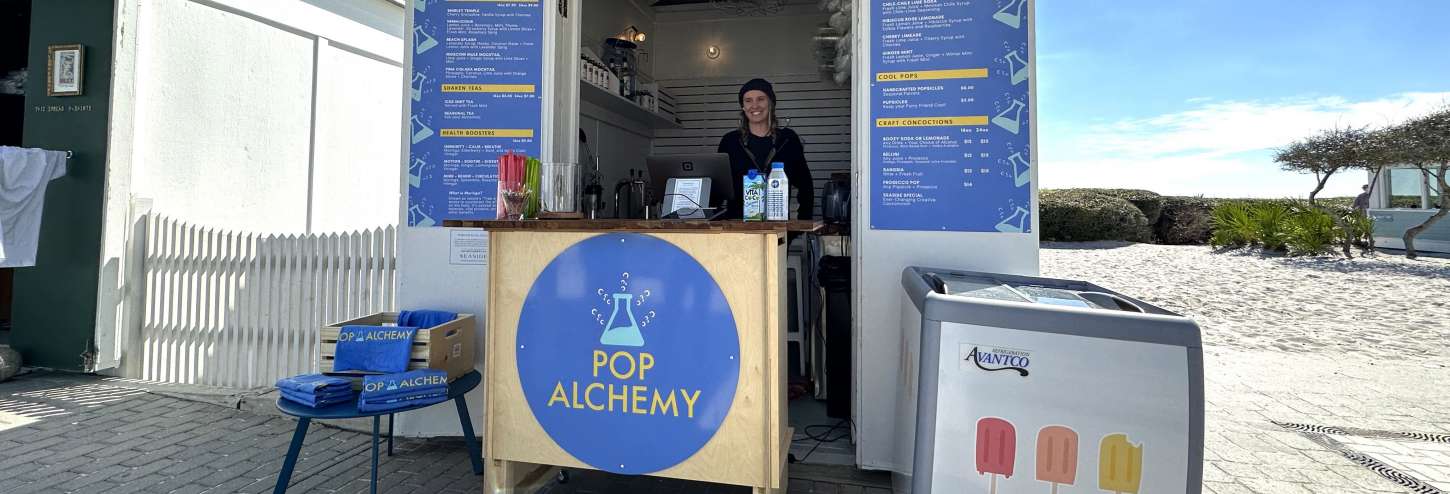 Related Items: Dining and RestaurantsCome visit Pop Alchemy in the Seaside Shopping District!Delicious, hand-crafted sodas, elegant mocktails, and wine-based cocktails to-go.Hours are 10am - 7pm